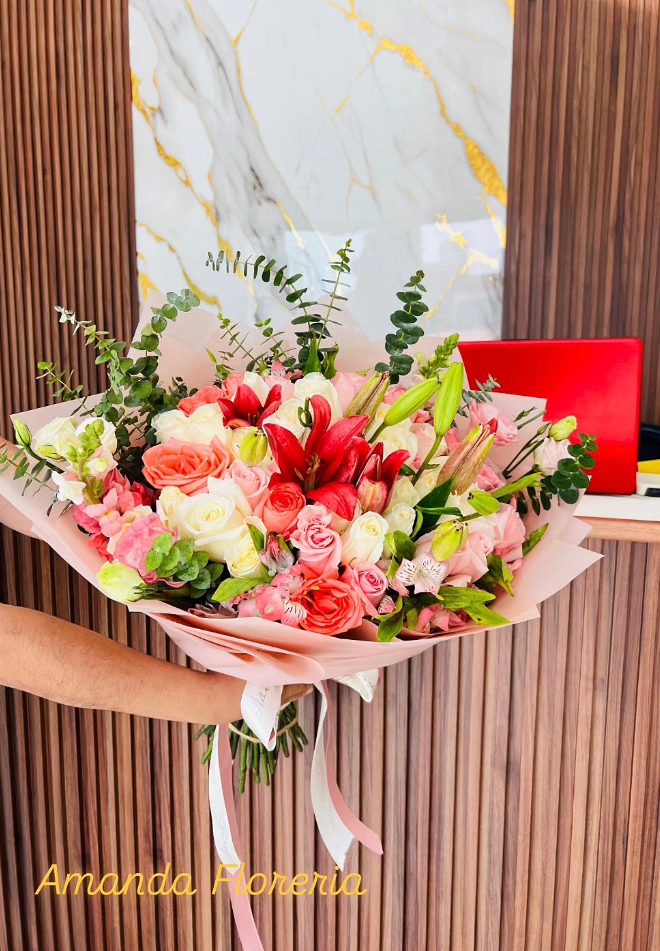 Las flores secundarias y tonalidades pueden variar ligeramente según disponibilidad, manteniendo siempre la esencia, calidad y estilo del arreglo.